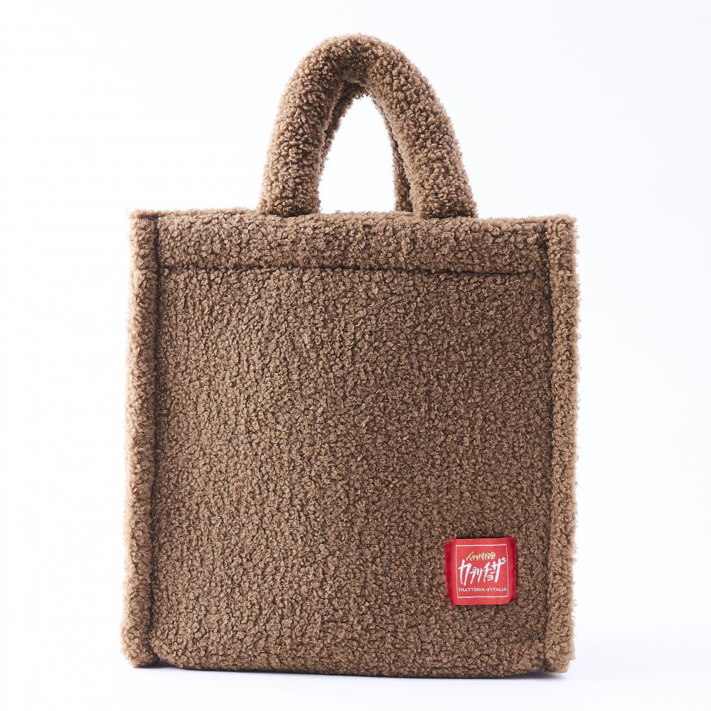 ブラウンを基調に、カプリチョーザのロゴのレッドカラーがアクセントになった、マチ付きバッグです。ふんわり柔らか素材であたたかみのあるデザインがポイント。サブバッグとしても使いやすいサイズ感で、ちょっとしたお出かけに便利なアイテムに仕上がっています。