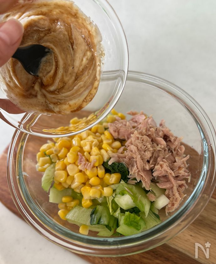 ●オイスターソースと白すりごまの風味でいつものマヨサラダがワンランクアップしますよ♪