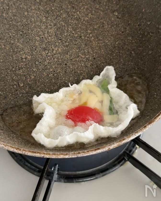 中〜低温でじっくり揚げてしまうと、油を吸いすぎてギトギトになってしまうので注意です!