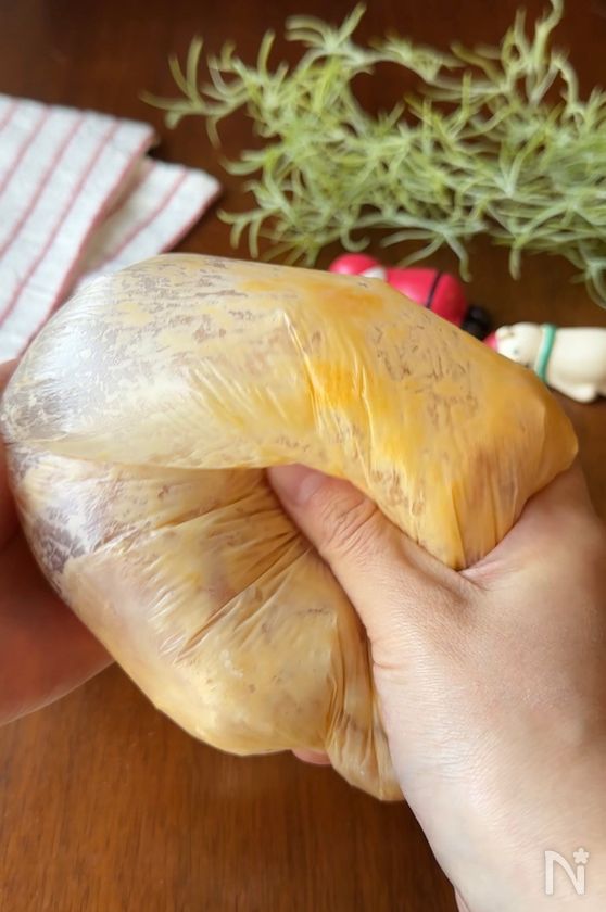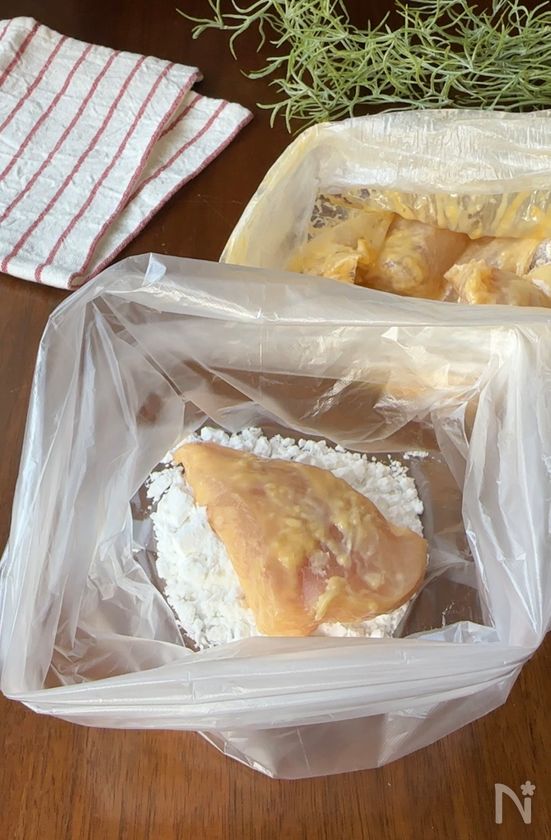 ポリ袋に鶏むね肉と【A】を入れて揉む。