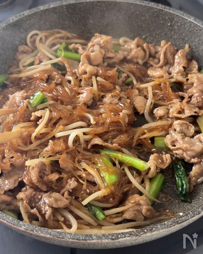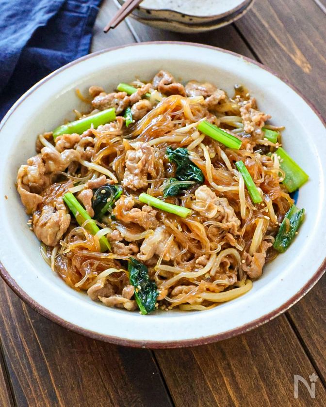 【ワンパン10分♡豚こまともやしの春雨いため】天才的に旨い♡
