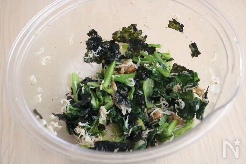 箸休めに。小松菜の梅しらす和え【レンジで時短♪5分副菜】