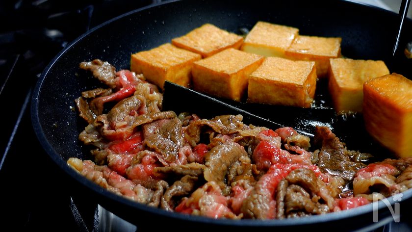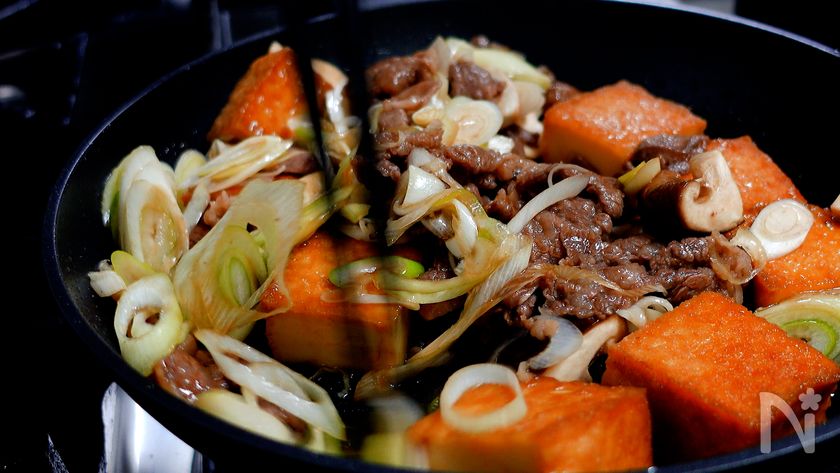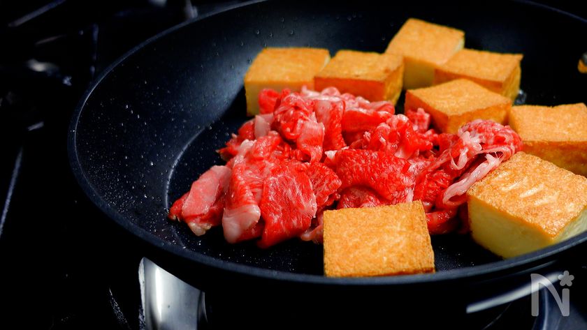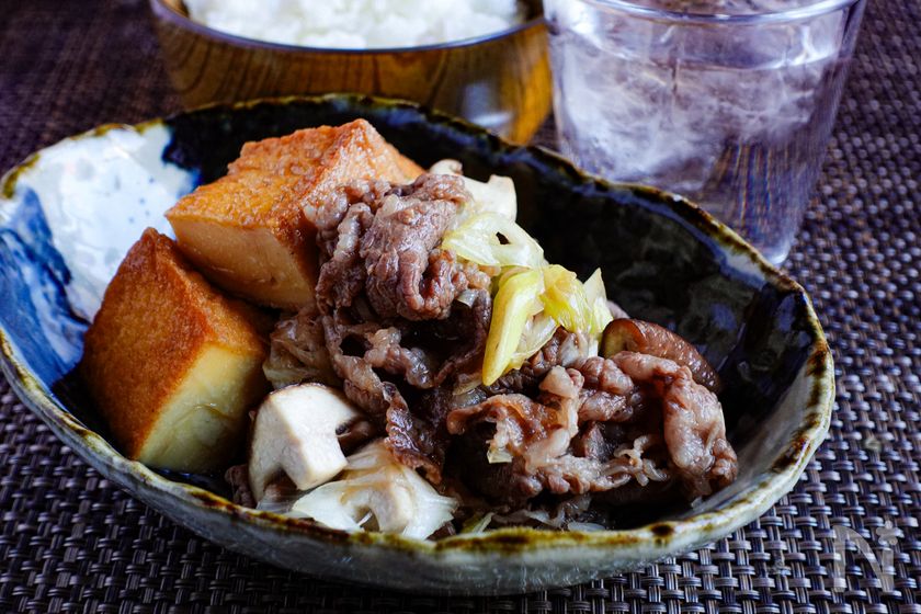 パパっと作る『牛肉と厚揚げのすき焼き炒め』