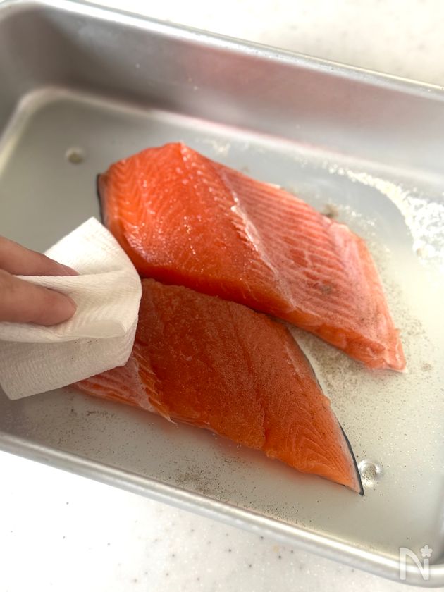 •サクラマスは流水で洗い、塩をして出てきた水分を拭き取ると臭みが気になりません。