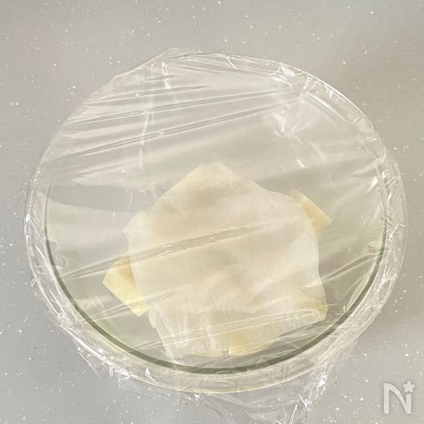 じゃがいものレンジ加熱時間はお使いのレンジのメーカーや型式で調整して下さい。