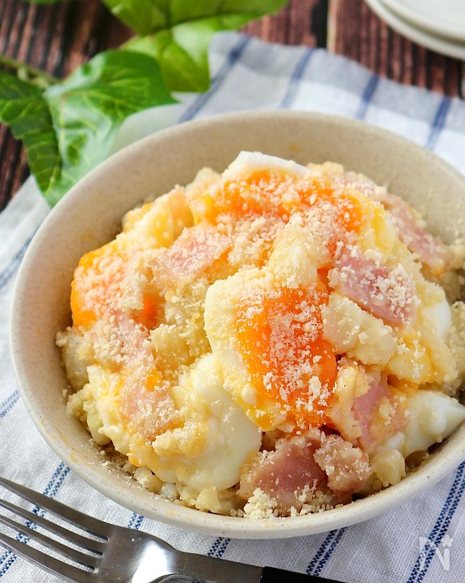 ダブル粉チーズがポイント♪香ばしベーコンの濃厚ポテサラ