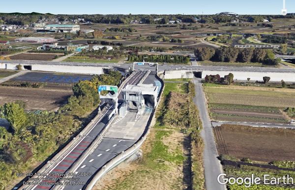 首都高埼玉新都心線のさいたま見沼IC(画像:Google Earth)。