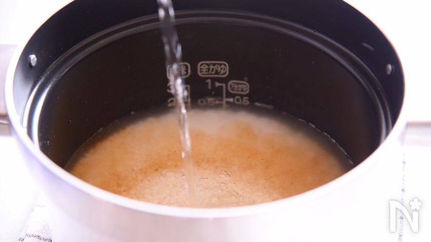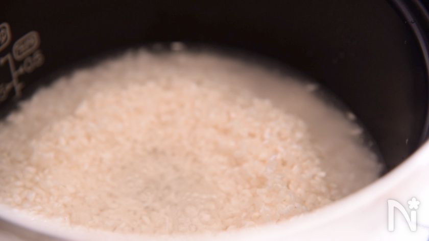 (1) お米は洗って水に30分程浸けておきます。純水に浸けておく方が美味しくふっくら炊飯できます。