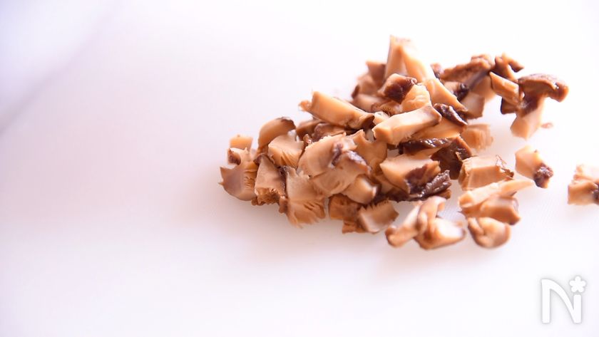 (5) 干し椎茸はギュッと絞って小さく切っておきます。