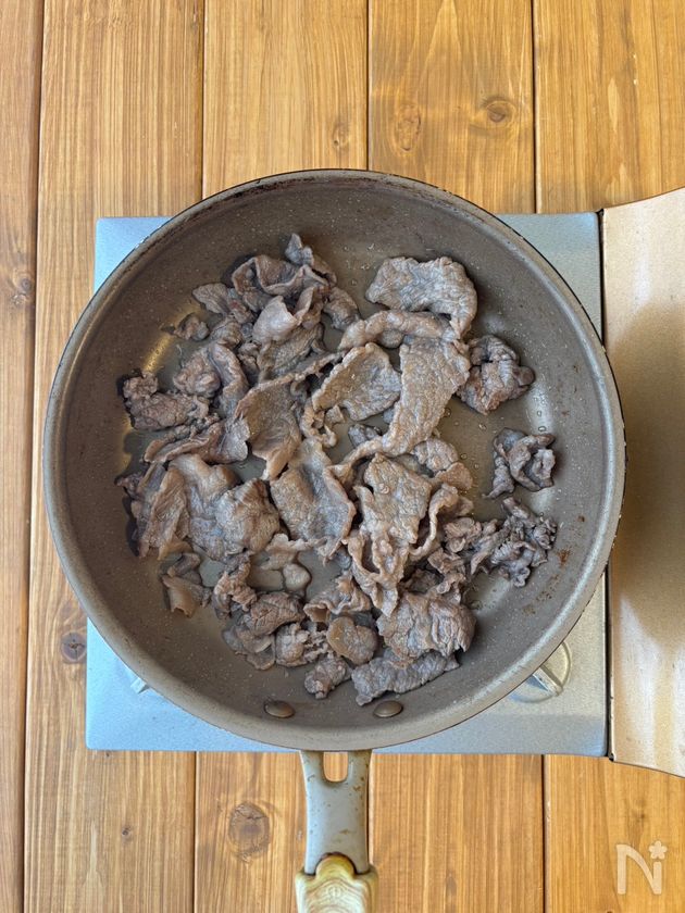 ・牛肉は固くなるのを防ぐため、熱を通しすぎないよう一度フライパンから取り出すのがポイントです!