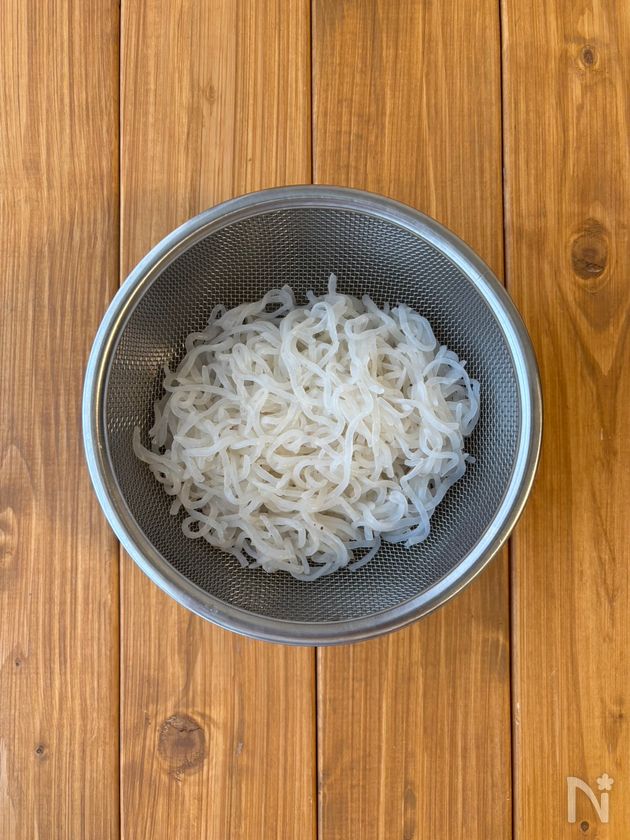 1L程度の湯(分量外)を沸かし、塩3つまみ程度(分量外)としらたきを加えて3分茹でる。
