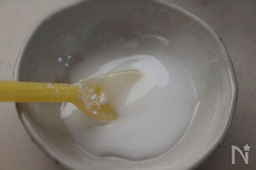 (1) 粉糖に一滴ずつ水を加えて混ぜ、トロリとしたソース状にしておく。