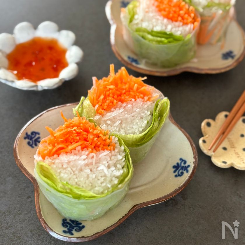 自家製スイートチリで♪野菜たっぷり生春巻き
