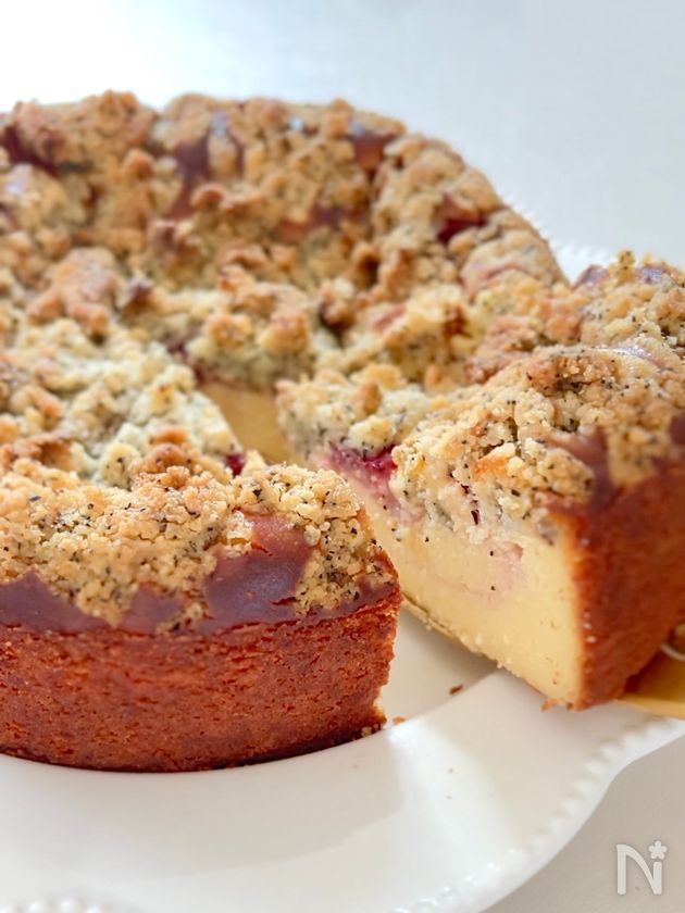 生クリームなしでも絶品♡いちごと紅茶のクランブルチーズケーキ