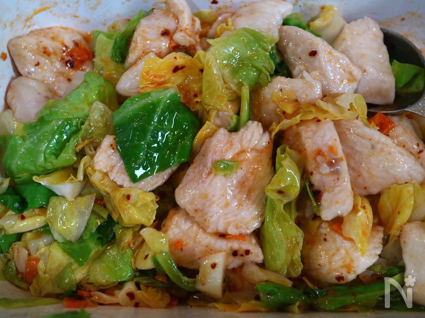 春キャベツと鶏むね肉のピリ辛蒸し