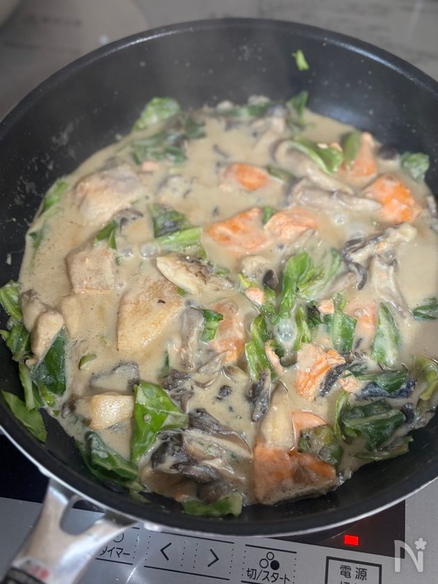 ワンパン【鮭とキャベツときのこの豆乳クリーム煮】カルシウム◎