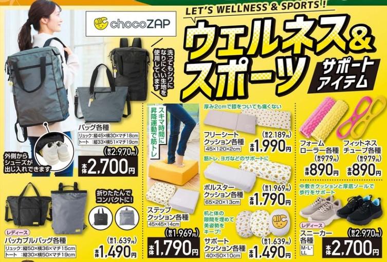 【しまむらのチラシ】chocoZAPコラボのスポーツ用品に温活インナーも!お手頃&高機能な生活アイテムがたっぷり届いたよ~。《19日まで》