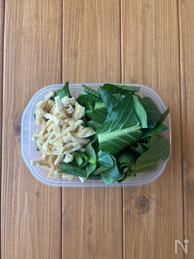 レンジで5分!【小松菜の鶏がらお浸し】胡麻油香る♩