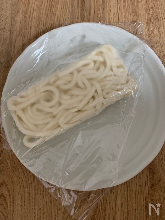 (下準備) うどん(冷凍)は耐熱容器に入れ、ふんわりラップをかけたら電子レンジ(500W)で約4分加熱する。