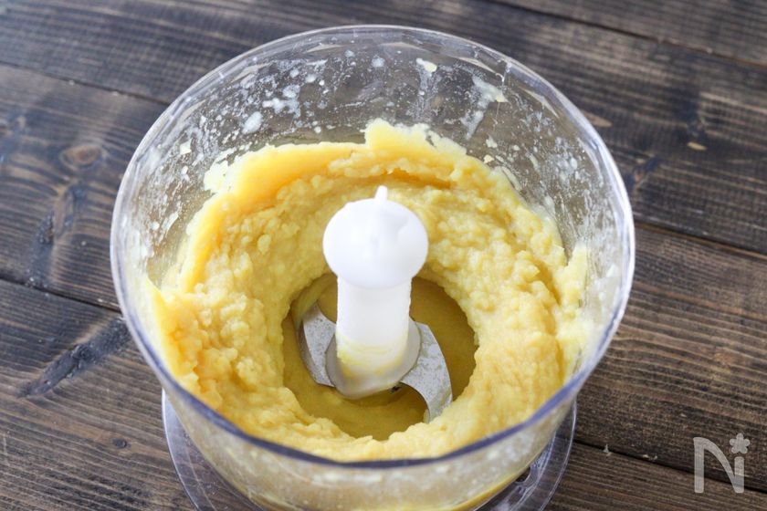 (3) フードプロセッサーにさつまいも、濃縮甘酒をいれ攪拌する。