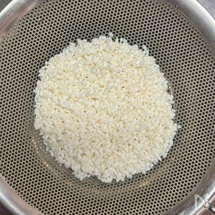 米は洗い、ざるに上げて20分ほどおく。