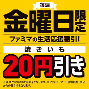 10月3日から26年5月29日までの期間、毎週金曜日限定で「焼きいも」が20円引きになります。