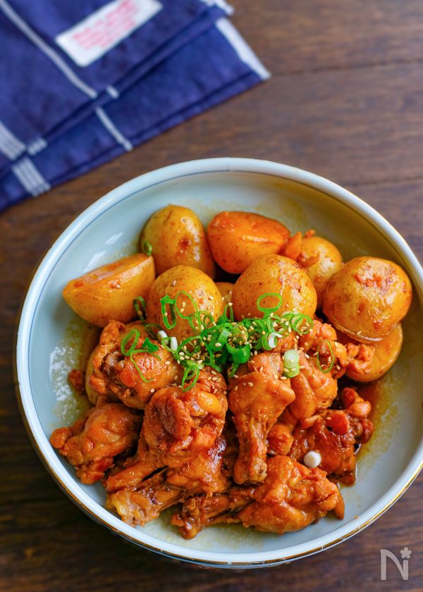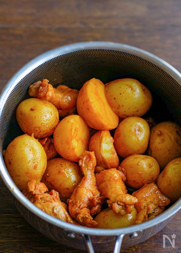 味しみ新じゃがと手羽元の照り煮