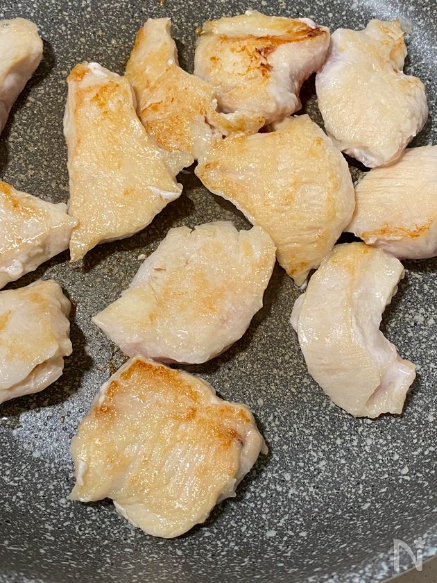 ・鶏むね肉は片栗粉をしっかりめにまぶすとしっとり仕上がります。