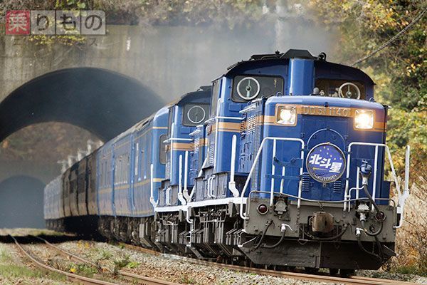 寝台特急「北斗星」の食堂車「グランシャリオ」では、フランス料理のフルコースも提供された(2014年10月、恵 知仁撮影)。