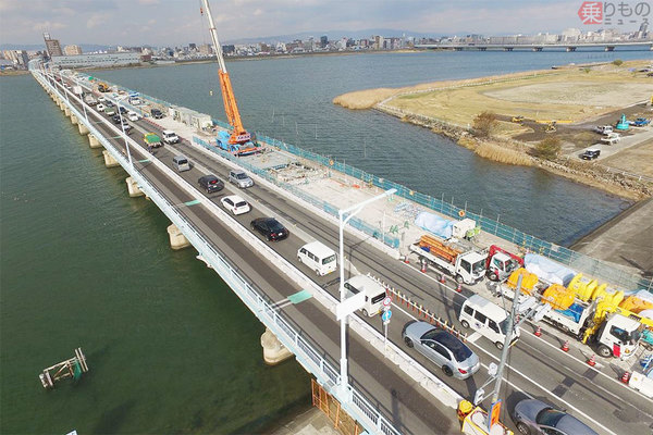 これにより、床版が約1万2000tから約4700tに軽量化され、橋桁を支える橋台や橋脚への負担が軽減、耐震性能も向上したそうです。なお、工事規制の解除にともない、車道は2車線から4車線に復帰します。大阪国道事務所は「次の100年に向けた修繕が完了」したとしています。