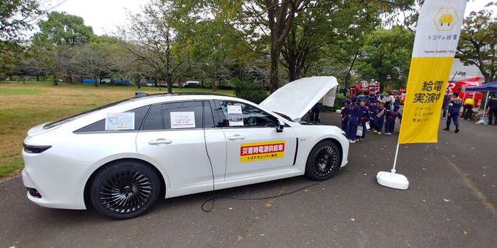 給電車両の展示、給電車両を使用したスマホの充電体験などをしてみよう!