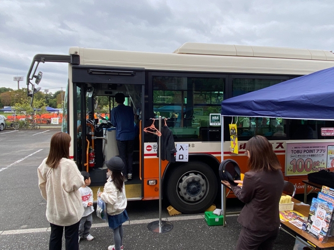 東武バスが、園内に登場!バス乗車中の発災に備えて、安全に外へ出られる非常口の位置を確認してみよう!