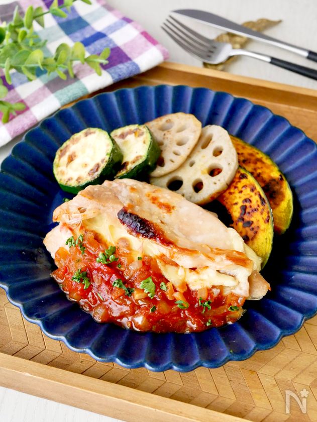 【鶏むねのマルゲリータ風挟み焼き〜グリル野菜を添えて〜】