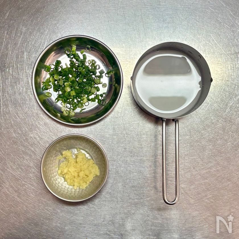 (3) 細ねぎは小口切りにする。