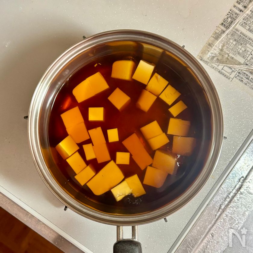 鍋に【A】を入れて5分ほどおき、弱火にかける。