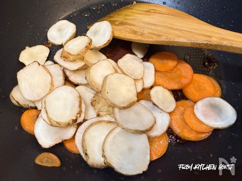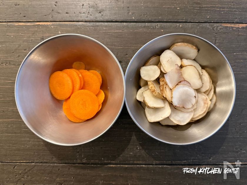 ありのまま(輪切り)の方が、千切りよりも食感が残る…と思い、このレシピを作りました。