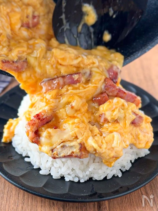 【簡単なのにおいしすぎる!】とろとろ卵のペペロンチーズ丼