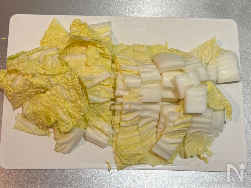 (1) 白菜はざく切りにする。