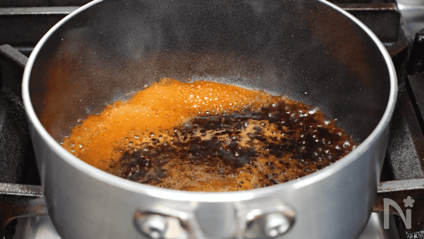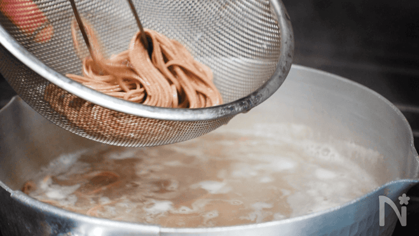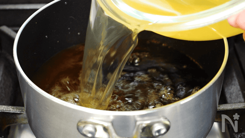 (4) 3に2の出汁を合わせ、そばつゆをつくる。