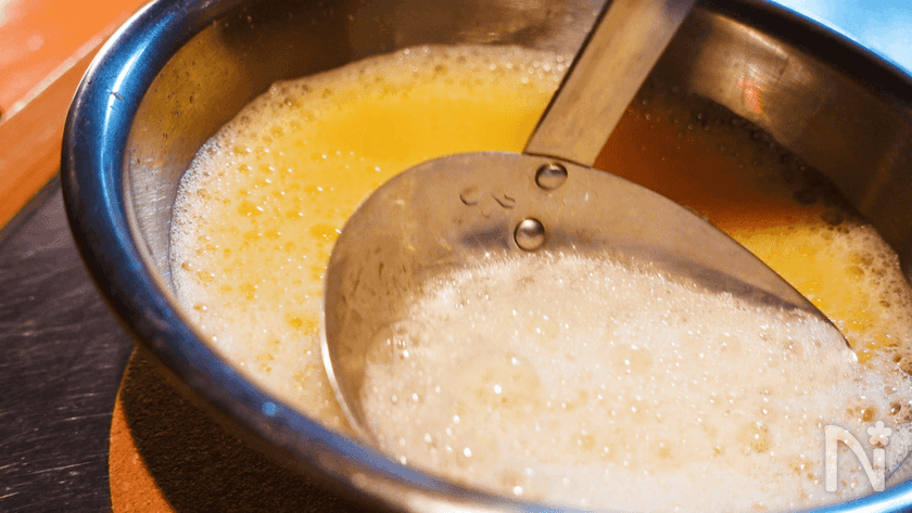 (8) ボウルに【C】を入れ、よく混ぜたら、泡を取り除く。冷蔵庫で冷やしておく。