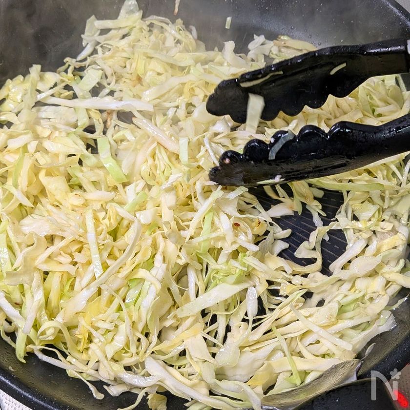 ・キャベツは肉から出た油でサッと炒めましょう。火力を上げて少し焼き色を付けることで甘みと香りが増します。しんなりしたらすぐ取り出しましょう。