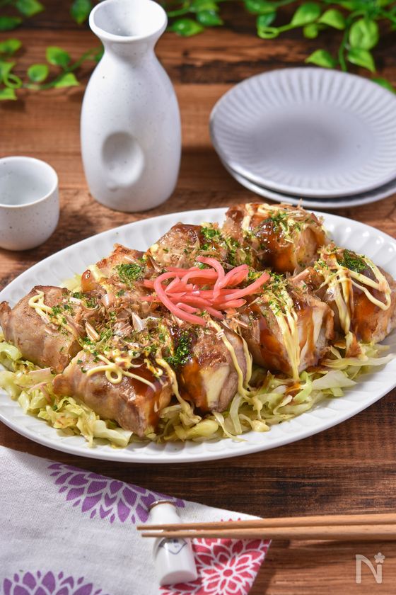 厚揚げ肉巻きのお好み焼き風│10分強でワンパン節約おかず
