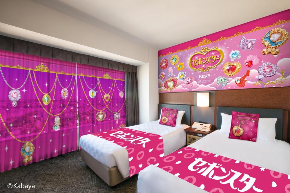 部屋の随所に「セボンスター」のペンダントが散りばめられたコンセプトルームです。乙女心をくすぐるキュートな装飾に囲まれた空間は、「セボンスター」のキラキラの世界観をたっぷりと満喫させてくれます。