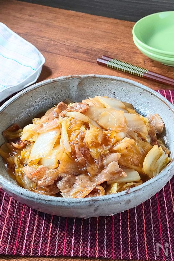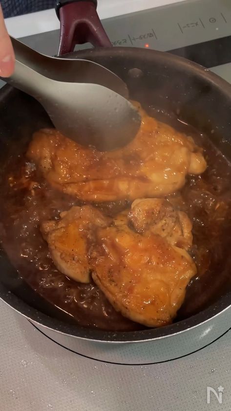 (2) 油を軽く拭き取って【A】を加え、トロミがつくまで煮込んだら、盛り付けて完成。