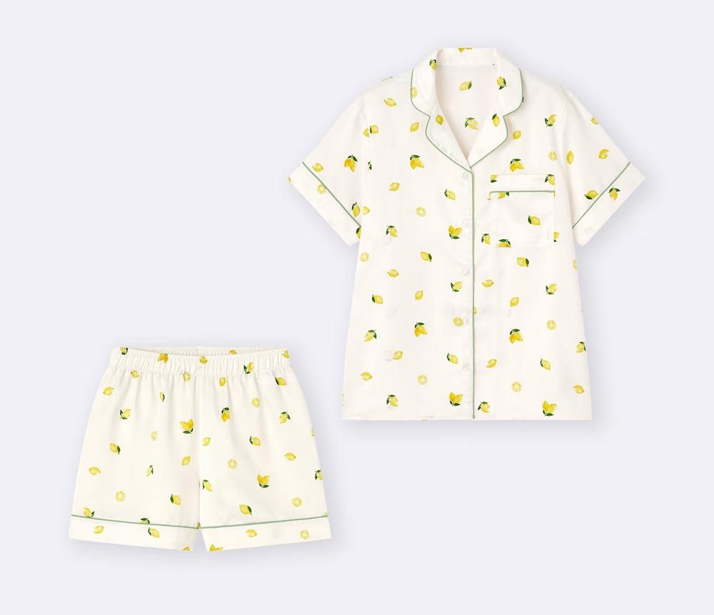 上品な光沢感となめらかな風合いが特徴のサテン素材を使用した夏向けパジャマです。パステルカラーの無地、レモン柄、ドッグ柄など、さまざまなデザインがあります。