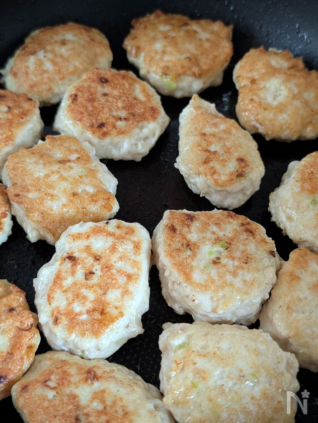 工程2を15等分程度に丸めて並べる。(市販のチキンナゲットの大きさが目安)