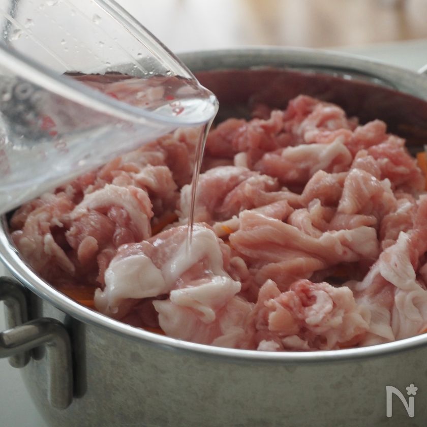 ・豚肉はこまかく切っておいた方が味がしみ込みやすくなります。