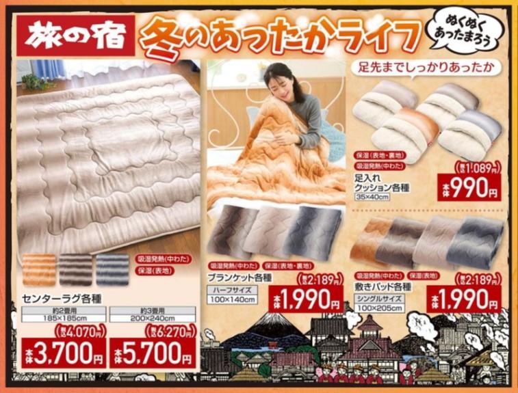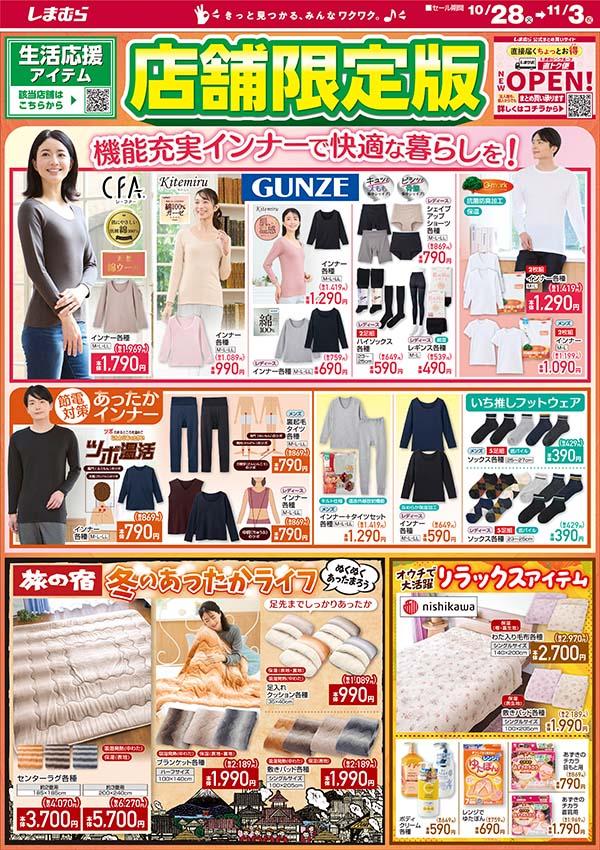 【しまむらのチラシ】今週は冬に活躍の"機能性インナー"が充実。旅の宿コラボの寝具も気になる...。《11月3日まで》
