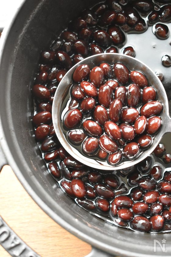 ◯黒豆煮はお好みで生地に混ぜる分と上にちらす分とわけてもOK