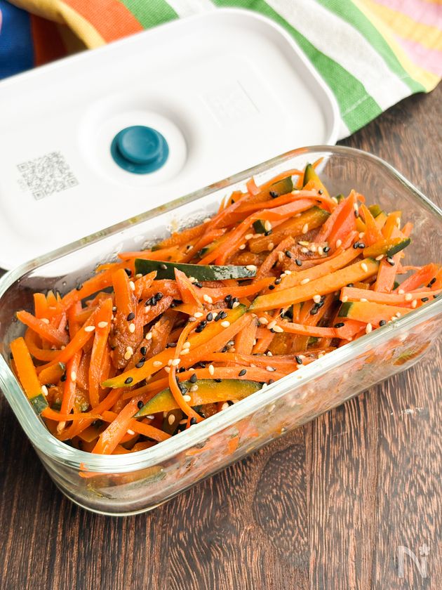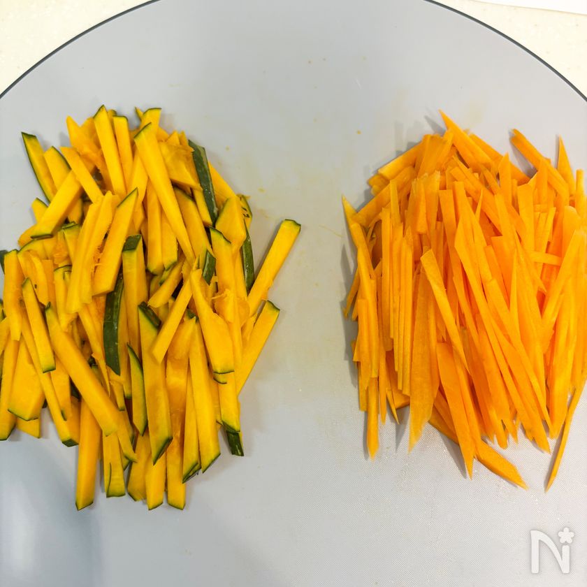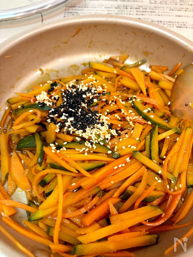 【病みつきシャキシャキ食感】人参とかぼちゃの胡麻きんぴら🎶